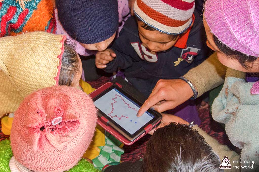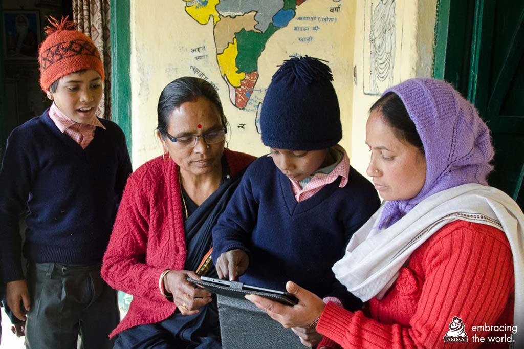 « Notre projet de suivi à distance dans l’Uttarakhand propose une solution innovante à ce problème. Les tablettes Android dotées d’applications destinées à collecter et envoyer des données, de même que WhatsApp, constituent une plateforme conviviale pour obtenir des informations en temps réel sur l’activité des professeurs dans le centre d’études et éradiquer l’absentéisme des professeurs ainsi que celui des élèves. Ces outils peu coûteux et faciles à utiliser peuvent aider à contrôler à distance les professeurs et les classes, et améliorer significativement les résultats. » Dans le cadre du programme Amrita Éducation et Tablettes en Inde rurale (AmritaRITE), les professeurs des centres éducatifs participants ont reçu des tablettes équipées d’une carte SIM 2 Giga pour se connecter en ligne. Les élèves reçoivent des tablettes à contenu éducatif, pouvant se connecter aux tablettes des professeurs grâce à Bluetooth.