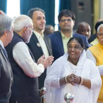 Le 2 octobre, à Delhi, lors d’une manifestation prestigieuse, le Premier ministre de l’Inde et le Secrétaire général de l’ONU ont décerné un prix spécial à Amma car c’est elle qui a fait offert la plus grande contribution financière au projet Swacch Bharat Abhiyan (Mission Inde propre), la plus grande Campagne de nettoyage menée par le gouvernement indien.