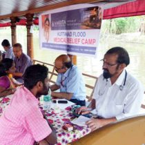 Les équipes médicales détachées de l’Institut Amrita de recherche en sciences médicales (l’hôpital Amrita) s’activent pour apporter des soins dans les zones éloignées frappées par les inondations, au Kérala. Il s’agit de lieux ayant des accès limités aux soins et parfois, les équipes doivent s’y rendre en bateau, à cause des graves inondations.