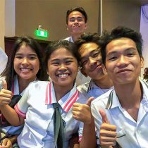 Quatre cent quatre-vingt élèves rescapés du typhon Haiyan-Yolanda qui a ravagé les Philippines, célèbrent la fin de leurs études secondaires plus de quatre ans après le passage de l’ouragan. Nombre de ces enfants avaient perdu un ou deux parents, Embracing the World a donc travaillé à reconstruire les écoles et octroyer des bourses d’études aux enfants.