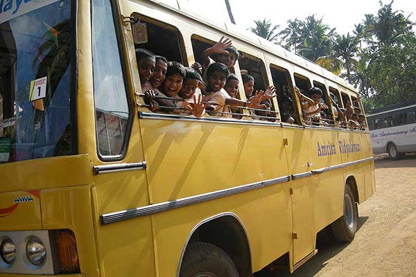 Nous ne faisons pas appel à des entrepreneurs. Tous les matériaux – briques, portes, tables, chaises et lits – sont fabriqués sur place. Électricité, plomberie et charpente, tout est fait par des bénévoles. Mais Amma attribue tout le mérite de sa réussite à ses admirateurs du monde entier.