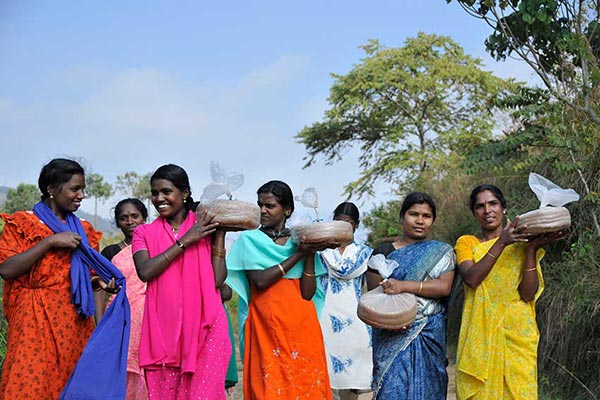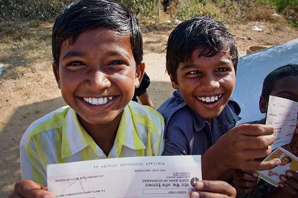 “C'est comme si on avait une rangée de verres et que l'on transvasait de l'huile d'un verre dans l'autre ; au bout du compte, il ne reste plus d'huile. Elle est restée collée à l'intérieur des verres. De cette façon, les bénéficiaires ne reçoivent que 100 des 1000 dollars du départ. Par contre, si nous recevons 10 dollars, nous rajoutons notre travail et l'argent se multiplie.” – Mata Amritanandamayi